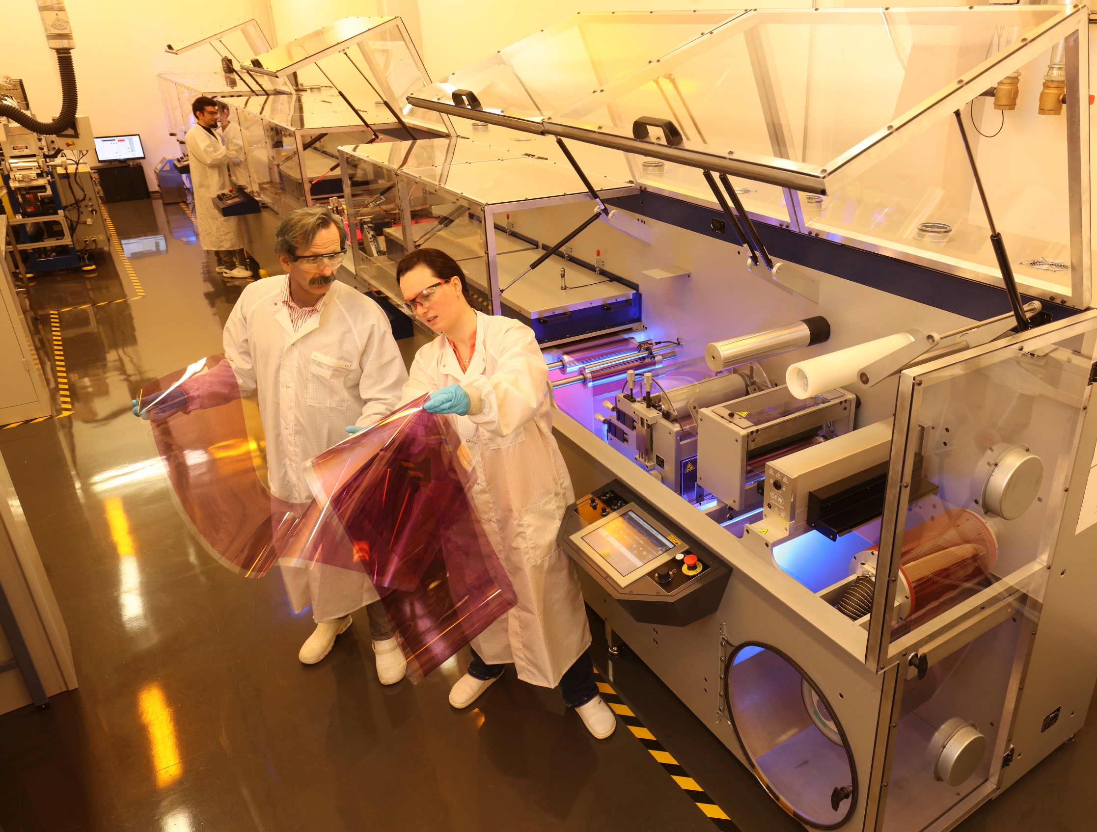 Used Instruments: Julich R2R infrustructure. Blade coating equipment. R2R (Roll-to-Roll) slot-die coater. Ultrasonic bath. UV-ozone treatment setup. Sun simulator (for solar cell and module measurements). Laser ablation equipment (for film thickness measurement). Confocal microscope. SEM (Scanning Electron Microscope).